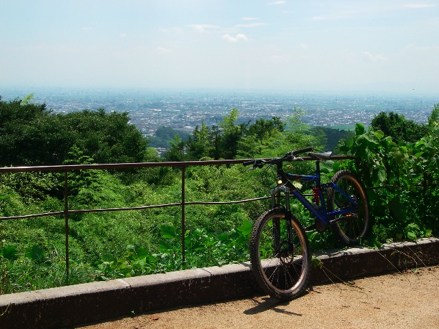 そして今日(7月26日)は、太田市(群馬県)の電器屋さんへ行ったついでに、マウンテンバイクで金山に登りました。金山(かなやま)というのは、太田駅の北側にある、ものすごく低い山(標高200メートル余り、写真 1 )で、わざわざロードレーサーに乗って行くようなところではありませんが、(私の持っているような)マウンテンバイクで登ると疲れます。登りきると太田の町を見下ろすことが出来ます(写真 2 )が、その低さ故に達成感はありません。下りは、少しだけ未舗装路を走りましたが(写真 3 )、散歩の延長で来てしまったためにヘルメットもコンタクトレンズも付けておらず、おそるおそる自転車を進めました。